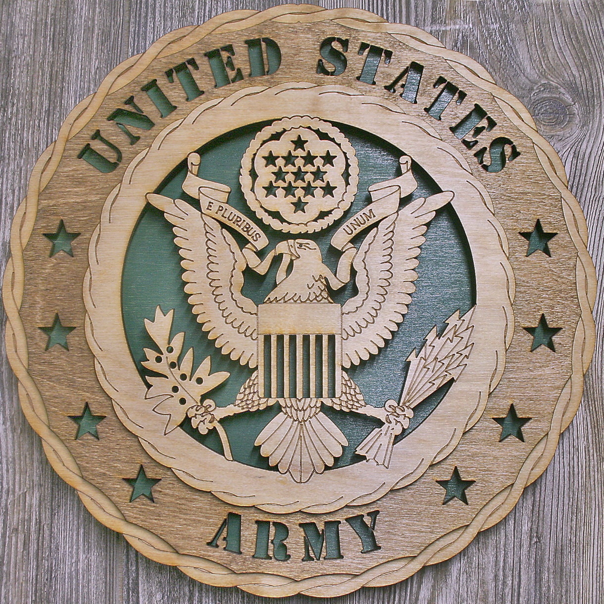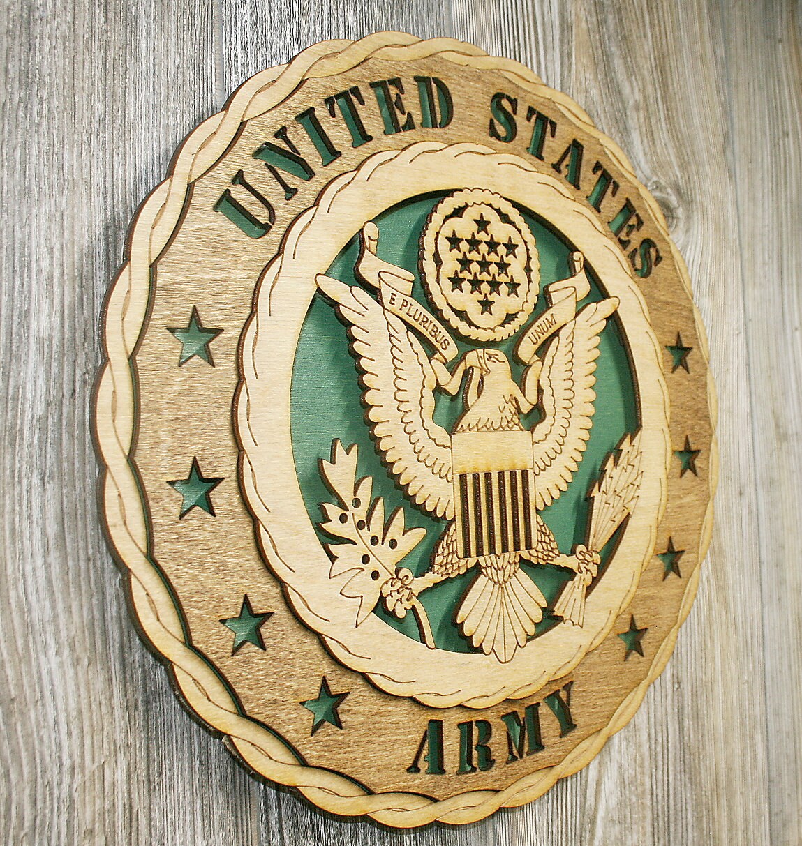 Custom 12″ or 18″ Wood Wall Tribute Made with 5 different layers to give a 3 dimensional look. All wall