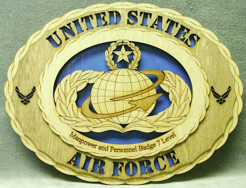 Custom 12″ Wood US Air Force Manpower and Personnel Badge Level 7 Wall Tribute Personalized – FREE SHIPPING