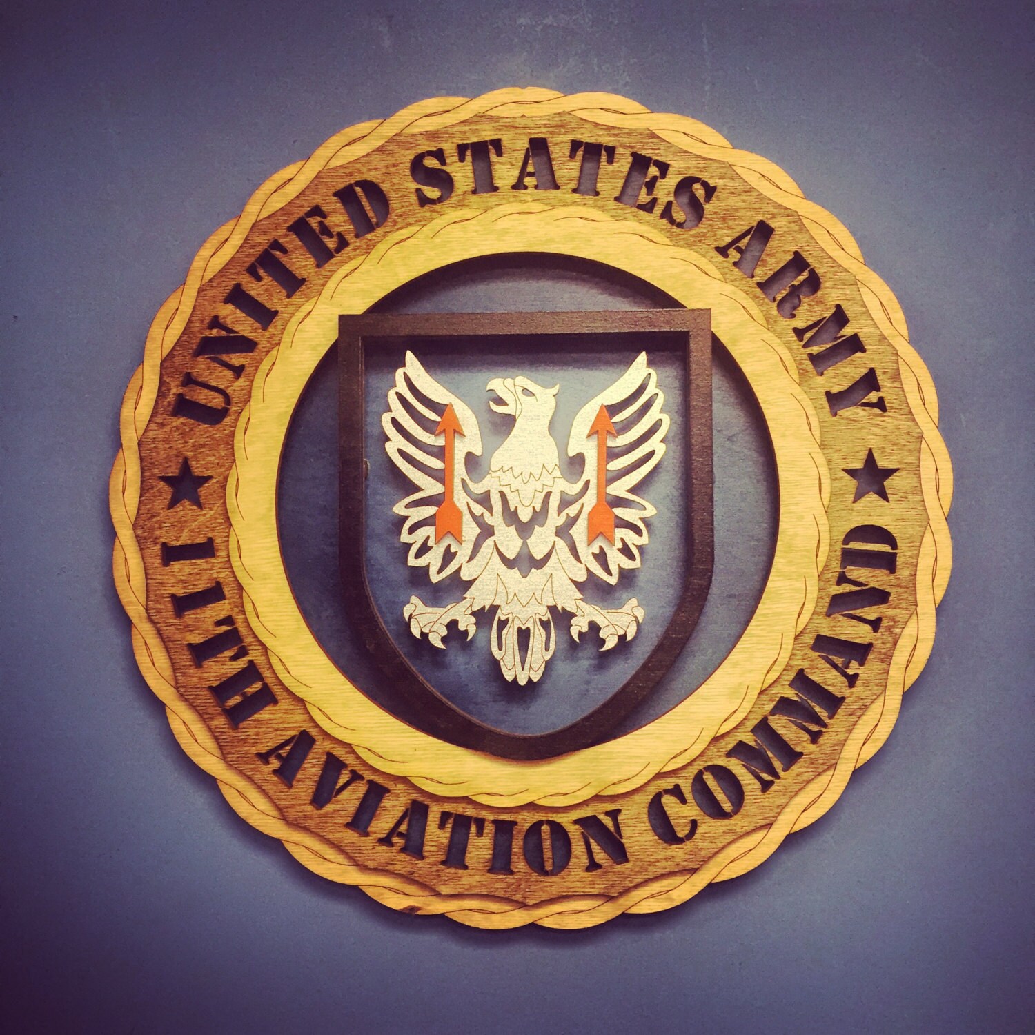 Custom 12″ Wood US Army 11th Aviation Command Wall Tribute – FREE SHIPPING