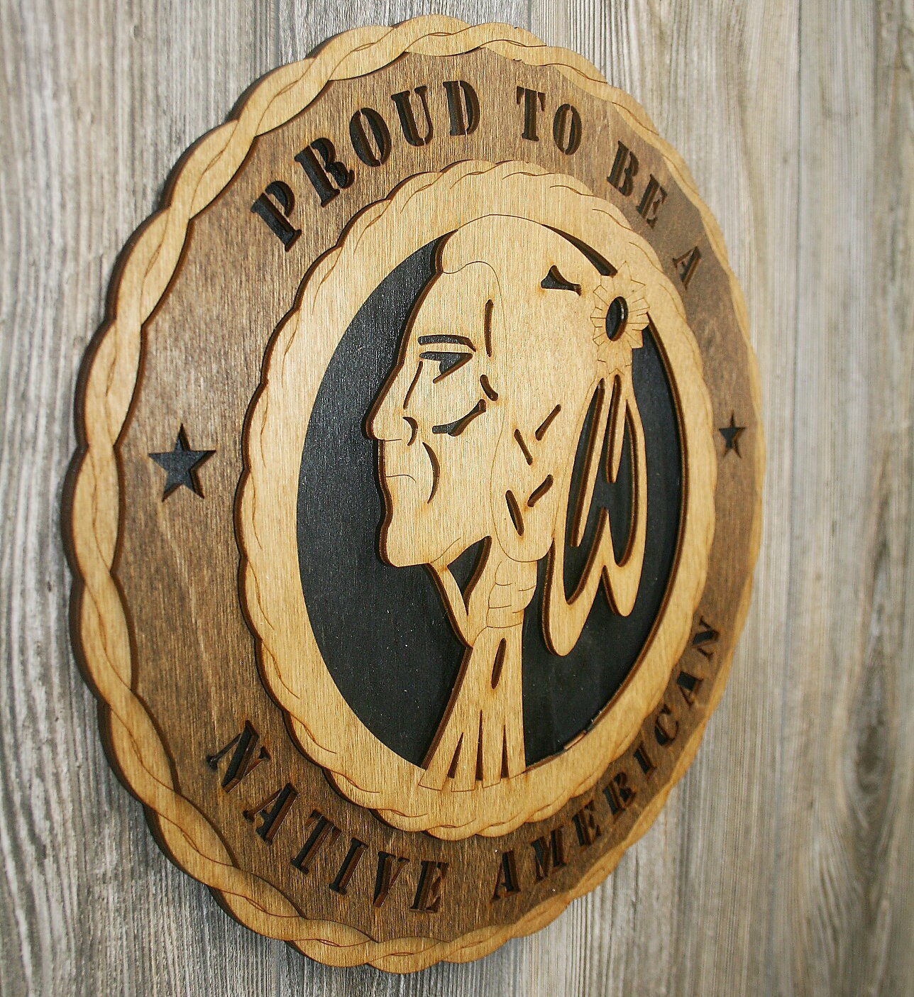 Custom 12″ or 18″ or 24″ Wood Wall Tribute Made with 5 different layers to give a 3 dimensional look.